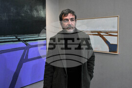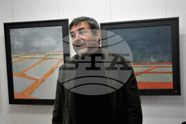 Бургас (14 февруари 2023) Художникът Иво Бистрички (на снимката) представя в бургаската галерия "Пролет" своята поредна изложба живопис под наслов "Солници". Пресфото-БТА снимки: Тодор Ставрев (ЕД)