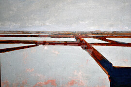 Бургас (14 февруари 2023) Художникът Иво Бистрички представя в бургаската галерия "Пролет" своята поредна изложба живопис под наслов "Солници". Пресфото-БТА снимки: Тодор Ставрев (ЕД)