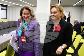 София (15 февруари 2023) Деветата Годишна среща на Националния борд по туризъм (НБТ) се провежда в рамките на 39-то издание на Международното туристическо изложение Ваканция & СПА в зала „Родопи“ на Интер Експо Център - София. На снимката: Ирена Георгиева (вляво), зам.-министър на туризма и Поля Карастоянова, НБТ.