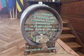 Перник (15 февруари 2023) Призьорите от 29-ия Международен фестивал на маскарадните игри „Сурва" в Перник получиха наградите си на специална церемония, състояла се в тържествената зала в Минната дирекция. В тазгодишния фестивал, който се проведе в края на януари, взеха участие над 10 000 носители на маскарадната традиция от България, а броят на чуждестранните групи беше 15. Голямата награда на фестивала „Златна маска" беше присъдена на сурвакарите от Батановци и кукерската формация при Народно читалище „Умение 2003 г." от Ямбол. На снимката: Награда получи сурвакарската детска група „Преличотине“ от град Трън.