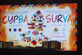 Перник (15 февруари 2023) Призьорите от 29-ия Международен фестивал на маскарадните игри „Сурва" в Перник получиха наградите си на специална церемония, състояла се в тържествената зала в Минната дирекция. В тазгодишния фестивал, който се проведе в края на януари, взеха участие над 10 000 носители на маскарадната традиция от България, а броят на чуждестранните групи беше 15. Голямата награда на фестивала „Златна маска" беше присъдена на сурвакарите от Батановци и кукерската формация при Народно читалище „Умение 2003 г." от Ямбол. На събитието присъстват Стефан Кръстев (дясно) - заместник-кмет на община Перник и Людмил Веселинов - областен управител на област Перник