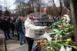 София (18 февруари 2023) Сдружението "Левски на левскарите" почита 150-ата годишнина от гибелта на Васил Левски с поднасяне на венци и цветя на паметника на Апостола в парк "Герена". На снимката: Ивайло Цветков (дясно).