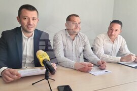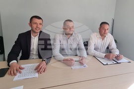 Перник (20 февруари 2023) Предложения за промени в Закона за защита от домашното насилие (ЗЗДН) и Наказателния кодекс (НК), предлагат от областната структура на политическа партия „Продължаваме Промяната" в Перник. Същите бяха представени днес на брифинг пред журналисти. На снимката от ляво надясно: Иван Павлов, Петър Петров и Кирил Стоев.