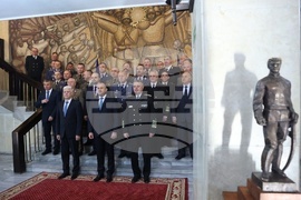 София (22 февруари 2023) В сградата на Министерство на отбраната се провежда годишна конференция на началника на отбраната. На снимката (от ляво надясно, долу): Димитър Стоянов - служебен министър на отбраната, Румен Радев - президент на Република България и адмирал Емил Ефтимов, началник на отбраната и висшият команден състав на Българската армия, генерали и офицери от видовете Въоръжени сили, директори на дирекции в Щаба на отбраната и Министерството на отбраната, началници и командири на структури на пряко подчинение на министъра на отбраната. Снимка: Владимир Шоков / БТА