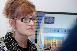 Търговище (22 февруари 2023) Конференция по проект „Европа в България: Общо бъдеще“, изпълняван от Българската телеграфна агенция (БТА) с подкрепата на Европейската комисия, се провежда днес в Пресклуба на БТА в Търговище. На снимката: инж. Полина Радославова – главен експерт „Териториално и селищно устройство“ към Община Търговище. Снимка: Красимир Кръстев/БТА (ЕД)