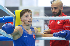 София (22 февруари 2023) В зала "София" се провежда 74-ото издание на Международния турнир по бокс за Купа „Странджа“. На снимката: Категория до 63,5 килограма. Световният вицешампион Керем Йозмен от Турция.