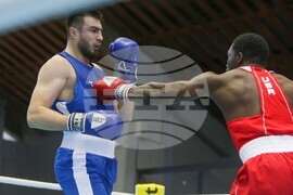 София (22 февруари 2023) В зала "София" се провежда 74-ото издание на Международния турнир по бокс за Купа „Странджа“. На снимката: Йордан Морехон (+92 кг.) срещу Мохамад Абдулаев (Азербайджан).