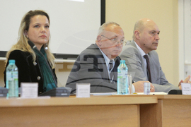 София (22 февруари 2023) Национално съвещание на МВР се провежда в сградата на Главна дирекция "Национална полиция“. На него присъстват политическото и професионалното ръководство на МВР, директорите на главни дирекции, ОДМВР и СДВР, както и на административните структури в министерството. По време на съвещанието се обсъждат резултатите от дейността на МВР по превенция и противодействие на престъпността, състоянието на пътнотранспортния травматизъм през 2022 г., организацията на дейността на структурите на МВР в периода на подготовката и провеждането на избори за 49-то Народно събрание. На снимката (от ляво надясно): Моника Димитрова-Бийчър, заместник-министър на вътрешните работи, Емил Ганчев, заместник-министър на вътрешните работи, Венцислав Катинов, заместник-министър на вътрешните работи.