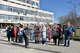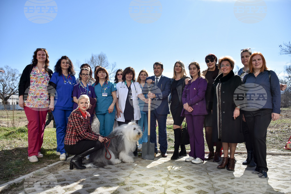 Пловдив (22 февруари 2023) Започва изграждането на новия диагностично-лечебен корпус на Клиниката по педиатрия към УМБАЛ “Свети Георги”– Пловдив. Изпълнителният директор на болницата проф. Карен Джамбазов, зам.-министърът на здравеопазването Катя Ивкова, началникът на детската клиника проф. Иван Иванов и представители на местната власт дадоха начало на строителството на сградата, която ще се намира на територията болницата на бул. „Пещерско шосе“. Строежът се финансира с 42 млн. лева от държавния бюджет с решения от 2020 и 2022 година с дарения на стойност над 170 хил. лева от 160 благодетели. Срокът за завършването на строителството е три години. Снимка: Боян Ботев / БТА (ЕД)