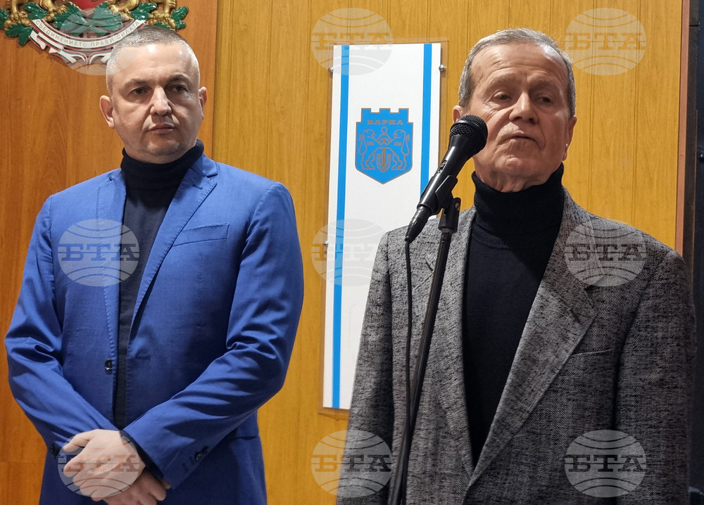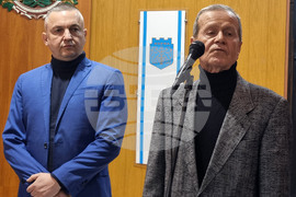 Варна (22 февруари 2023) В сградата на Община Варна бе подписан новият колективен трудов договор в сферата на образованието между Община Варна и социалните партньори. На снимката: Иван Портних (вляво), кмет на Варна и Веселин Рашев, председател на Синдиката на българските учители във Варна.