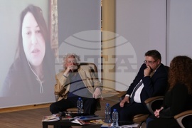 София (24 февруари 2023) Февруарският брой на списание ЛИК - “Гласът на българите в Украйна” се представя в БТА в зала "МаксиМ". В представянето на ЛИК се включиха Кирил Вълчев, генерален директор на БТА, доц. Георги Лозанов, главен редактор на списание ЛИК, Яница Христова, отговорен редактор на списанието, авторите на броя - Аня Терзивец, Светлана Драгнева и Мария Попова, общественици и хора от сферата на изкуството и образованието. На снимката: Преслава Виденова. Снимка: Владимир Шоков/БТА (ЕД)