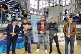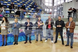 Самоков (25 февруари 2023) В зала ,,Арена Самоков" се проведе втори национален турнир „Зимни феи и купа Самоков“. На церемонията присъстваха областният управител Радослав Стойчев, кметът на община Самоков Владимир Георгиев, Радослав Христов, общински съветник, Дончо Зашев, заместник - кмет на община Самоков, Красимир Димитров, управител на зала ,, Арена Самоков" и др. Снимка: Иван Ласкин/БТА (ЕД)