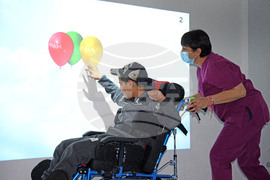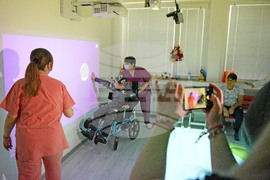 Варна (1 март 2023) В Дома за медико-социални грижи за деца – Варна беше направено официално представяне на най-новата технология, с която разполага лечебния комплекс – виртуална стая за рехабилитация на деца с двигателни увреждания. Системата „Нирвана" е единствена във Варна и в Североизточна България. Закупена е изцяло с дарителски средства и от нея безплатно ще могат да се възползват деца от цялата страна, ползващи услугите на Центъра. Снимката: Красимир Кръстев/БТА (ЕД)