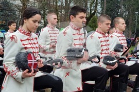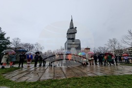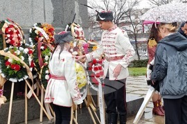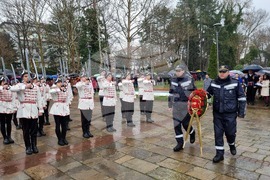 Кърджали (3 март 2023) С шествие на представителните блокове на учебните заведения в Кърджали бе дадено началото на тържествената програма, посветена на националния празник на България – 3 март. Честването продължи пред Паметника на Освободителите в Градската градина, където бяха поднесени венци и цветя, а кметът инж. Хасан Азис отправи приветствие към гражданите. Снимка: Валентина Стоева /БТА (ЕД)