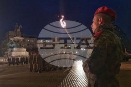 София (3 март 2023) На площад „Народно събрание“ пред Паметника на Цар Освободител се провежда тържествена заря-проверка по повод на националния празник Трети март. Снимка: Владимир Шоков/БТА (ЕД)