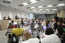 София (7 март 2023) В зала „Европа” в сградата на КНСБ се провежда национална конференция на тема „Равнопоставеност между мъжете и жените и условията на труд - тенденции и предизвикателства”. Форумът е организиран от Комисията за равнопоставеността, семейството, жените и децата към КНСБ, Фондация „Фридрих Еберт” и Синдикат на българските учители по повод 8-ми март - Международен ден на жените. На снимката: заместник директорът на ИССИО на КНСБ Виолета Иванова.