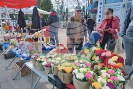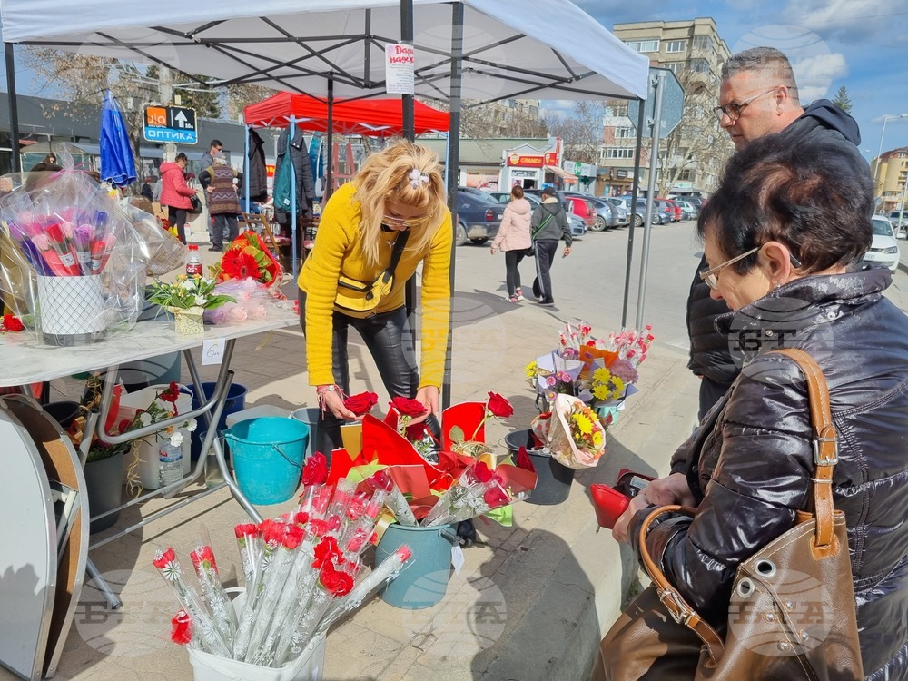 Търговище (8 март 2023) В празничния Ден на жената - Осми март, продажбата на цветя и осмомартенски ръчно изработени сувенири в Търговище продължава. Слънчевото време даде възможност на търговците да реализират стоката си, а на силната половина на човечеството да зарадват своите майки, жени, сестри и любими. На няколко места в областния център се продават букети с кауза – в подкрепа на диагностицираната с онкологично заболяване и лекуваща се в Турция Грациела Ганева от Търговище.