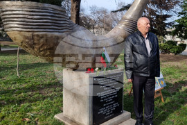 Варна (10 март 2023) Пред Паметника на благодарността във Варна бе отбелязана 80-годишнината от спасяването на българските евреи. В отбелязването на годишнината, организирано от Регионалната организация на евреите „Шалом“ в града, се включиха граждани, потомци на спасени евреи и бяха наградени призьорите от ученически конкурс за есе и рисунка на тема „Памет. Толерантност. Единение." На снимката: Паметникът на благодарността. Монументът, представляващ шофар, е дело на Людмил Блажев. Той бе поставен от „Шалом" преди 10 г. като символ на признателността на варненската еврейска общност към българския народ.