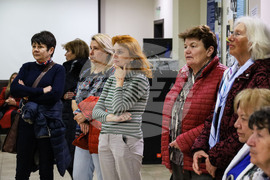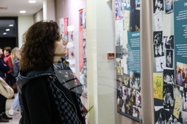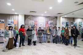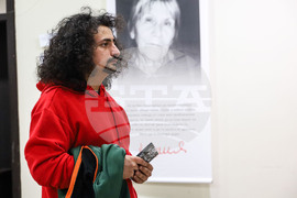 Бургас (10 март 2023) В Културен център "Морско казино", зала "Георги Баев", изложба представя живота и творчеството на режисьора Юлия Огнянова. Събитието е по повод отбелязването на сто годишнина от нейното рождение. На снимката: директорът на куклен театър Бургас Христина Арсенова, ученик на Юлия Огнянова.