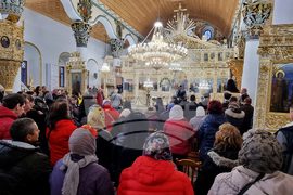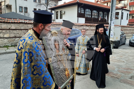 Хасково (10 март 2023) Десетки миряни посрещнаха в храма "Успение на Пресвета Богородица" в Хасково иконата "Света Богородица - Златна ябълка", за която се смята, че има целебна сила. Знеполският митрополит Арсений отслужи малко повечерие с Богородичен акатист. Иконата ще остане в Хасково до неделя.