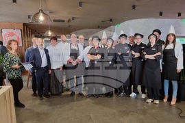 Габрово (11 март 2023) Министърът на туризма Илин Димитров откри първото по рода си кулинарно състезание в Габрово. Проявата е посветена на 60-годишнината от откриването на Професионалната гимназия по туризъм „Пенчо Семов“ (ПГТ „Пенчо Семов“). В надпреварата ученици от ПГТ „Пенчо Семов“, ще готвят в отбори с директори на различни институции в Габрово. На снимката: отборите министър Илин Димитров - Камелия Митева, д-р Минко Михов - Ина Мандева и Кристина Сидорова - Мартин Иванов.