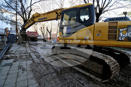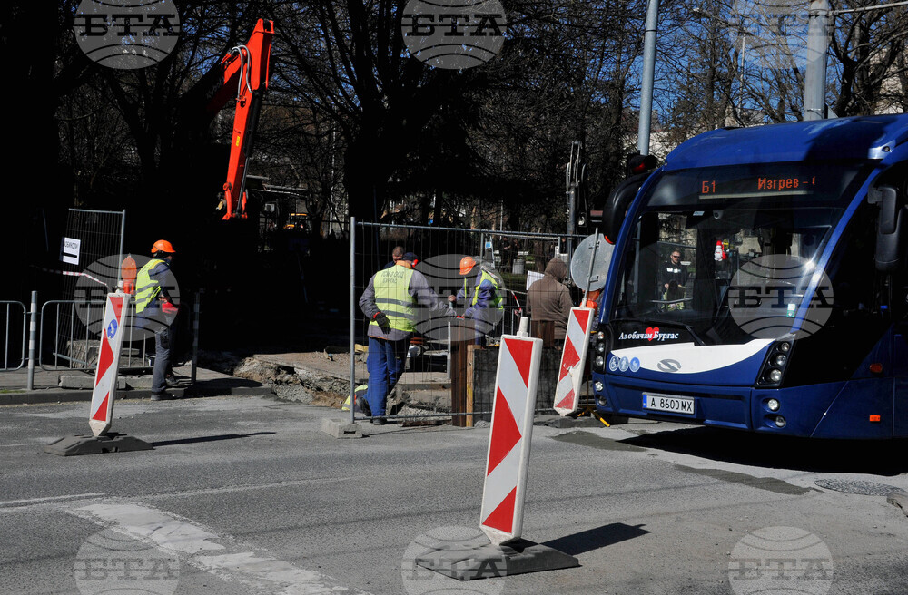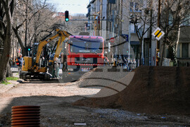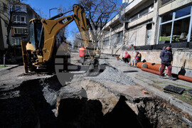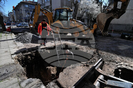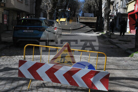 Бургас (13 март 2023) Продължава подмяната и реконструкцията на ВиК мрежата в централната градска част на Бургас. Въвежда временна организация на движението, като на места движението на моторните превозни средства е поетапно. Снимка: Тодор Ставрев /БТА (ЕД)