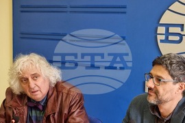 Пазарджик (15 март 2023) Писатели, общественици, преподаватели, художници и журналисти участваха днес в среща-разговор, посветена на 160-годишнината от рождението на Алеко Константинов. Инициативата на БТА „Алеко днес" беше представена в пресклуба в Пазарджик от литературния историк доц. Йордан Ефтимов и директорът на Дирекция „Знание и култура - ЛИК" доц. Георги Лозанов. Присъстващите споделиха интересни и малко известни исторически факти, свързани с живота на Алеко Константинов. На снимката: писателят Александър Йотов (ляво) и преподавателят Костадин Пампов (дясно),