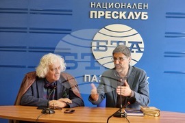 Пазарджик (15 март 2023) Писатели, общественици, преподаватели, художници и журналисти участваха днес в среща-разговор, посветена на 160-годишнината от рождението на Алеко Константинов. Инициативата на БТА „Алеко днес" беше представена в пресклуба в Пазарджик от литературния историк доц. Йордан Ефтимов (дясно) и директорът на Дирекция „Знание и култура - ЛИК" доц. Георги Лозанов (ляво). Присъстващите споделиха интересни и малко известни исторически факти, свързани с живота на Алеко Константинов.