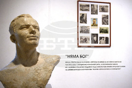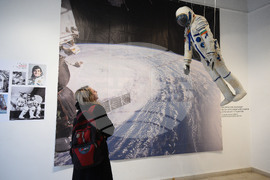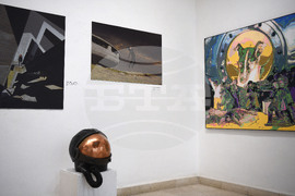 Варна (16 март 2023) В Градската художествена галерия “Борис Георгиев” - Варна, се открива изложбата "Космодрум" - Космически истории от миналото. Тя е част от културологично изследване, което се занимава с космическата култура и история на България. С експозицията организаторите от проекта “Космодрум” отбелязват 35 години от космическия полет на Александър Александров, които се навършват на 7 юни. Снимки: Красимир Кръстев/БТА (ЕД)