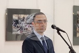 Горна Оряховица (17 март 2023) Фотоизложбата “Апокалипсис по Рихтер” показва последиците и преживяванията на пострадалите от унищожителното земетресение в Турция и Сирия. Автори на снимките, запечатали ужаса след унищожителните трусове, са видеооператорът на Нова телевизия Пламен Иванов и инспектор Мирослав Маринов от сектор „Специализирани оперативни дейности“ при Регионалната дирекция „Пожарна безопасност и защита на населението“ във Велико Търново. Изложбата е открита в ХГ "Недялко Каранешев". На снимката: главен комисар Александър Джартов, директор на ГДПБЗН.