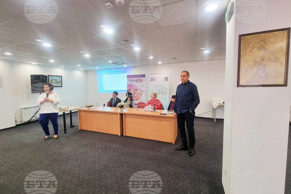 Кюстендил (24 март 2023) В Кюстендил започна традиционната годишна среща на фондация "Искам бебе", които отбелязва 16-ят си рожден ден. На снимката: основателят на "Искам бебе" Радина Велчева (дясно) .
