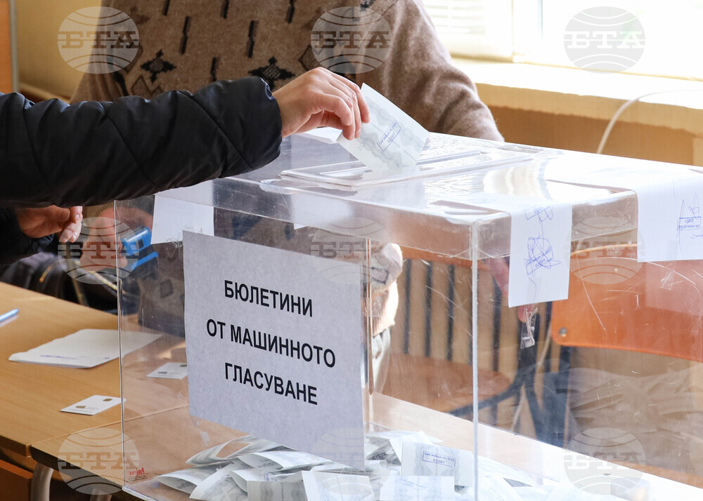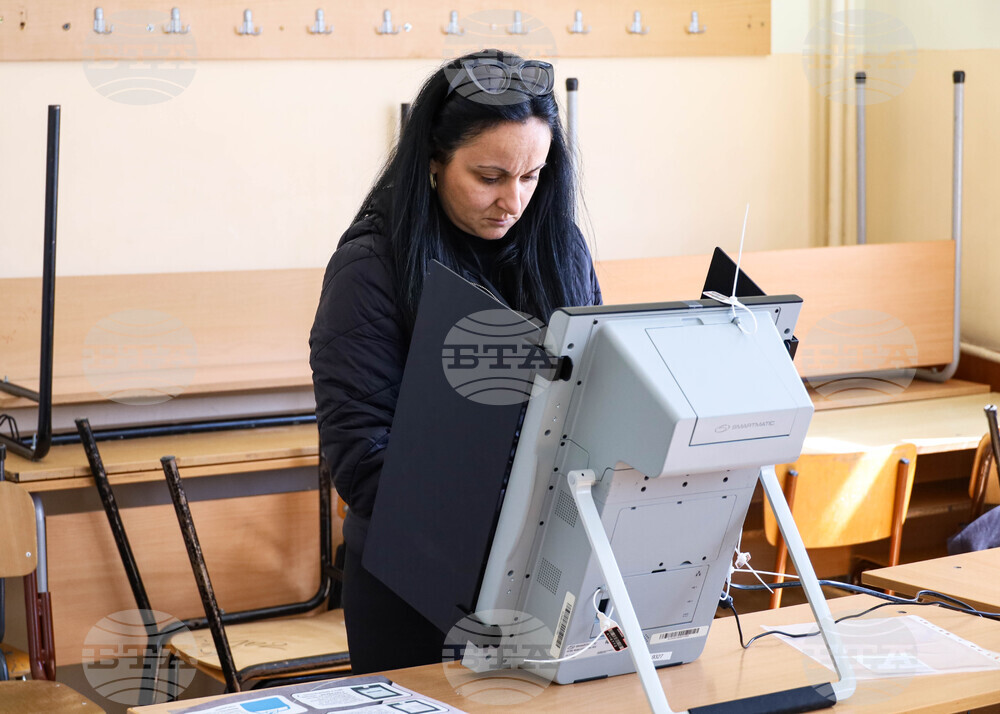 машини, така и с бюлетини. На снимката: машинно гласуване в ПМГ "Никола Обрешков" Бургас. Снимка: Христо Стефанов/БТА (ЕД)