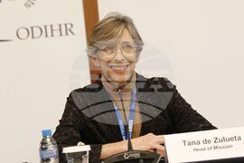 София (3 април 2023) В хотел „Балкан“ се провежда пресконференция на Парламентарна асамблея на Съвета на Европа (ПАСЕ) - делегацията се включи в наблюдението на изборния процес. На снимката: ръководителят на мисията на Организацията за сигурност и сътрудничество в Европа Тана де Зулуета.