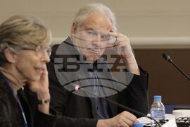 София (3 април 2023) В хотел „Балкан“ се провежда пресконференция на Парламентарна асамблея на Съвета на Европа (ПАСЕ) - делегацията се включи в наблюдението на изборния процес. На снимката: ръководителят на мисията на Организацията за сигурност и сътрудничество в Европа Тана де Зулуета (вляво) и ръководителят на делегацията на Парламентарната асамблея на Съвета на Европа (ПАСЕ) Андрей Хунко.