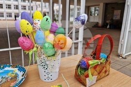 Бургас (5 април 2023) В двора на Основно училище "Елин Пелин" гр. Бургас се провежда благотворителен базар в подкрепа на Боби. Детето учи в същото училище и има нужда от операция, за да може да проходи. Всички предмети са ръчно изработени. Родители и ученици се включват. Създадена е и фейсбук група "Шанс за Боби", в която има информация за дарители. Снимка: Христо Стефанов/БТА (ЕД)