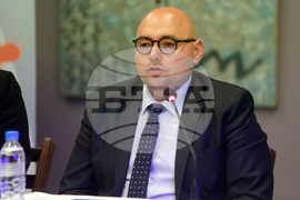 Разград (6 април 2023) Конференция по проект „Европа в България: Общо бъдеще“, изпълняван от Българската телеграфна агенция (БТА) с подкрепата на Европейската комисия, се провежда в Художествената галерия „Проф. Илия Петров" в Разград. На снимката: директорът на дирекция „Административно правно обслужване, финанси и управление на собствеността“ в Областна администрация – Разград Светлин Симеонов (ляво). Снимка: Цветомир Петров/БТА (ЕД)