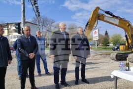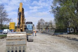 Пловдив (7 април 2023) Започна ремонтът на „Голямоконарско шосе" в обхвата на община Пловдив от бул. „Дунав" до землищна граница с община "Марица". Отсечката, с дължина 1,4 км. ще запази сегашните си габарити, но ще бъде изцяло рехабилитирана, съобщи кметът на Пловдив Здравко Димитров. Представителят на фирмата изпълнител „ИССА 2000“ Паун Иванов посочи, че в участъка ще бъдат изградени две кръгови кръстовища - едното на разклона за КАТ, другото – в края на отсечката към община „Марица“. Снимка: Ирина Шопова/БТА (ЕД)