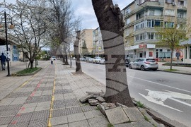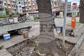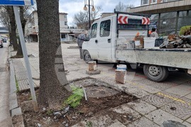Разград (7 април 2023)Община Разград започна обновяване на тротоарните пространства по улиците в централната част на града. Ремонтните работи стартираха от ул. „Васил Левски“, където повдигнатите плочки са най-видими и пречещи за нормалното движение на пешеходците. Целта е да се осигури безопасна и достъпна среда за придвижване на хората. След приключване на работата по тази улица, дейностите ще продължат по бул. „България“. Снимка: Садет Кърова/БТА (ЕД)