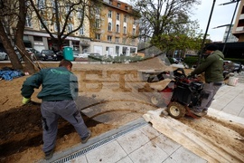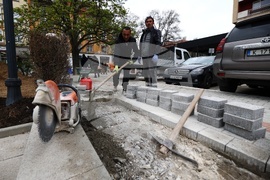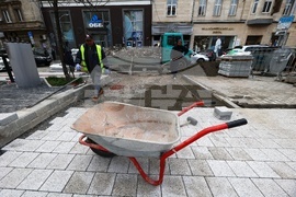 София (10 април 2023) Проверка на ремонта на градинката пред хотел "Рила". Снимка: Минко Чернев/БТА (ЕД)