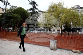 София (10 април 2023) Кметът на София Йорданка Фандъкова проверява ремонта на градинката пред хотел "Рила". Снимка: Минко Чернев/БТА (ЕД)
