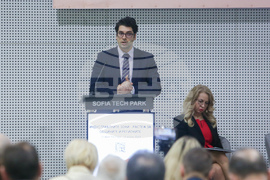 София (10 април 2023) Национална среща "Индустриални зони - растеж за общините и регионите" се провежда в София Тех парк. Форумът е организиран от Министерството на иновациите и растежа (МИР). Събитието е във връзка с предстоящо кандидатстване по една от най-важните процедури от Плана за възстановяване и устойчивост. На снимката: изпълнителният директор и член на Управителния съвет на Фонда на фондовете (МИР) Павел Лисев. Снимка: Цветомир Петров /БТА (ЕД)