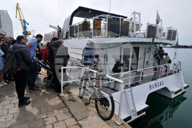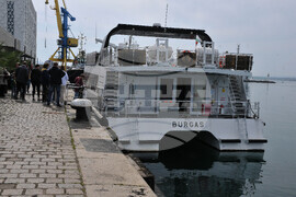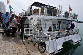 Бургас (14 април 2023) Днес бе първия курс на общинския кораб "Бургус" до остров Света Анастасия. Корабът тръгна от "Магазия 1" на Морската гара и ще извършва по един курс на ден. Това разписание ще важи до 17 април. По традиция и тази година с великденските пътувания до Света Анастасия се поставя и начало на сезона. Снимка: Тодор Ставрев /БТА (EД)