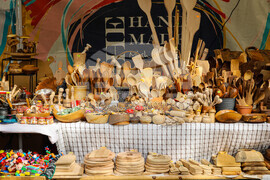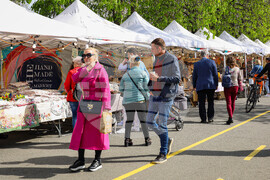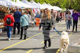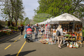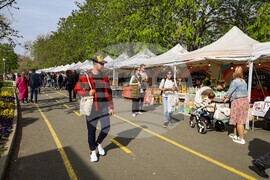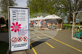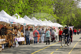 Бургас (14 април 2023) В морската градина на Бургас се провежда "Пролетен базар на изкуствата и занаятите". Разположен е на алеята до Експозиционен център "Флора". По време на събитието могат да се видят и закупят ръчно изработени стоки, произведения на изкуството, храни и други творби. Снимка: Христо Стефанов/БТА (EД)