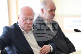 София (24 април 2023) Председателят на Столичния общински съвет (СОС) Георги Георгиев (вдясно) представя проект за изграждане на многофункционална спортна зала в район "Слатина".