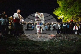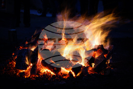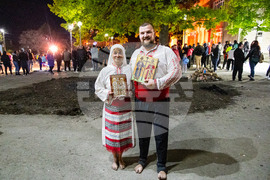 Село Трояново (1 май 2023) През нощта в село Трояново, община Камено се провеждат нестинарски танци. В ритуала участват Станислав Камалиев и Марче Господинова. Двамата стъпват боси върху жаравата - въглени, държейки икони на св. св. Константин и Елена. Снимка: Христо Стефанов/БТА (ПК)