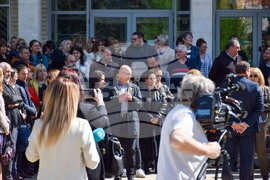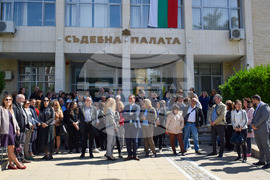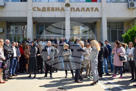 Благоевград (2 май 2023) Прокурори, съдии, следователи, представители на Община Благоевград и службите за сигурност подкрепиха главния прокурор, като излязоха на протест пред сградата на Съдебната палата в Благоевград. Снимка: Красимир Николов/БТА(ЕД)