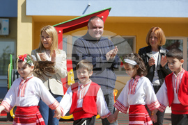 София (2 май 2023) В детска градина 88 в кв. „Дружба“, бяха предоставени контейнери за разделно събиране на отпадъци по проект на Столична община. Присъстват кметът на София Йорданка Фандъкова (втора от дясно наляво), зам.-кметът по екология Десислава Билева (ляво) и кметът на район „Искър“ Ивайло Цеков (дясно). Снимка: Цветомир Петров/БТА (ЕД)