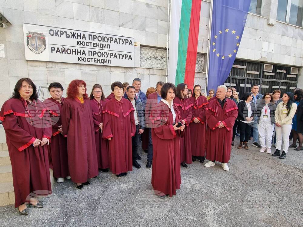 Кюстендил (2 май 2023) Прокурори, следователи и съдебни служители от Окръжната и Районната прокуратури в Кюстендил се присъединиха към инициативата, подета от Асоциацията на прокурорите в България. Днес те организираха протест срещу опита за покушение над главния прокурор и се събраха за няколко минути пред сградата на прокуратурата в Кюстендил.