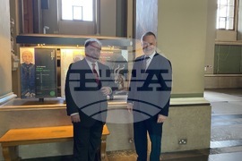 Лондон (3 май 2023) Тази вечер в Британския музей бе открита експозицията “Лукс и власт: от Персия до Гърция”, като цялата изложба е организирана около Панагюрското съкровище. Вицепрезидентът на България Илияна Йотова и министърът на културата Найден Тодоров бяха първите официални гости, които разгледаха изложбата. Придружаваше ги българският посланик в Лондон Марин Райков. На снимката (от ляво надясно): служебният министър на културата Найден Тодоров и директорът на Британския музей в Лондон Хартвиг Фишър по време на откриването на изложбата “Лукс и власт: от Персия до Гърция”.