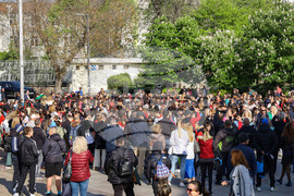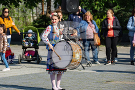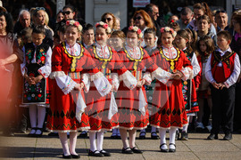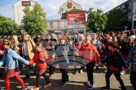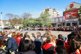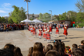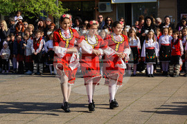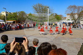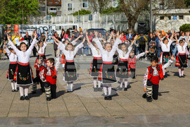 Бургас (4 май 2023) На площад "Тройката" в центъра на Бургас се провежда празнично хоро на Основно училище "Любен Каравелов". В инициативата се включват ученици и родители. Снимка: Христо Стефанов/БТА (ЕД)